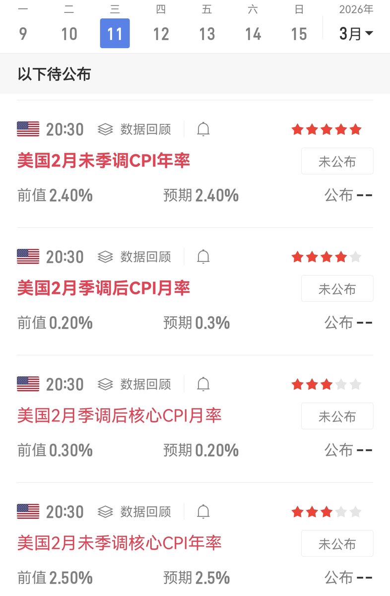 今晚八点半老美公布cpi数据 美伊还在打仗 这个数据大概率不会太好看