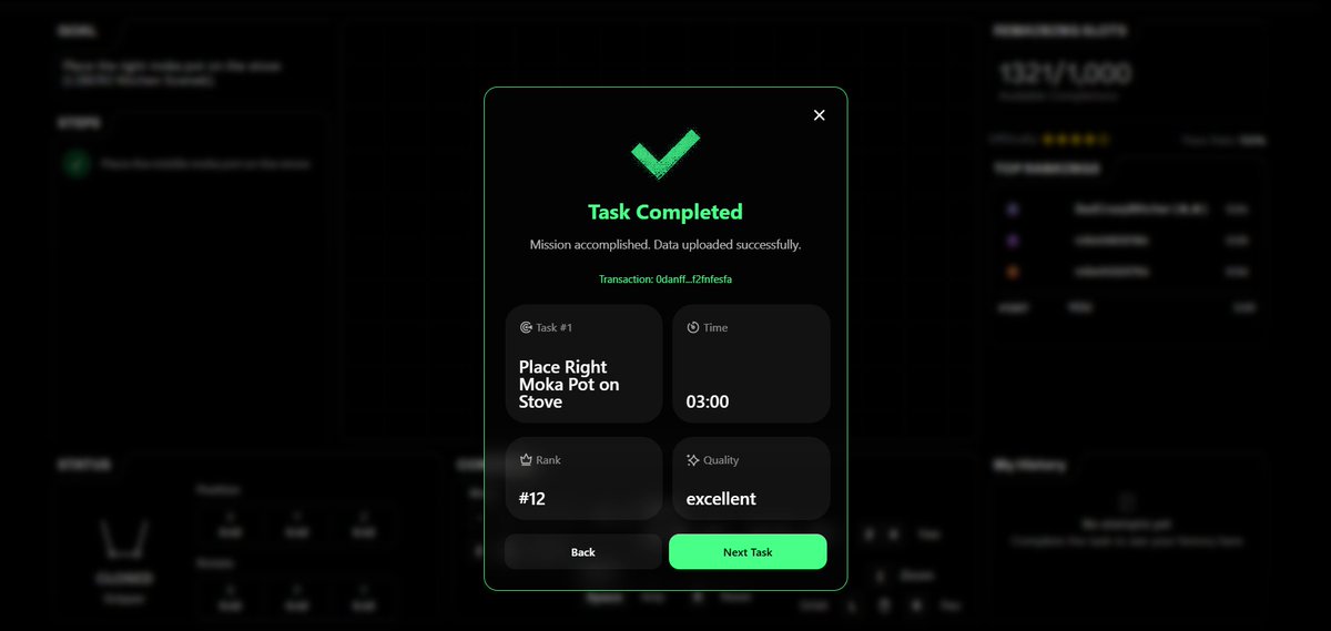我试做了一个任务,感觉还挺简单的,先链接钱包,熟悉一下每个电脑按键功能,再完成虚拟机械臂操作即可。