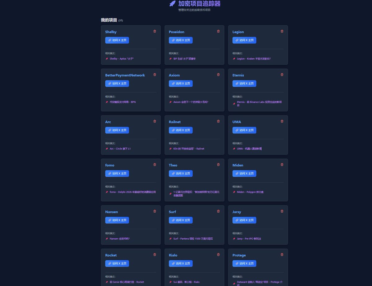 Vibe code 做了个网站,用来追踪自己看好的项目。