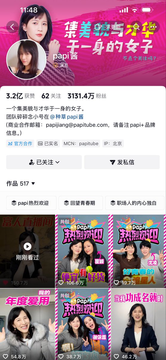 papi酱抖音3100万粉丝全网粉丝8000万