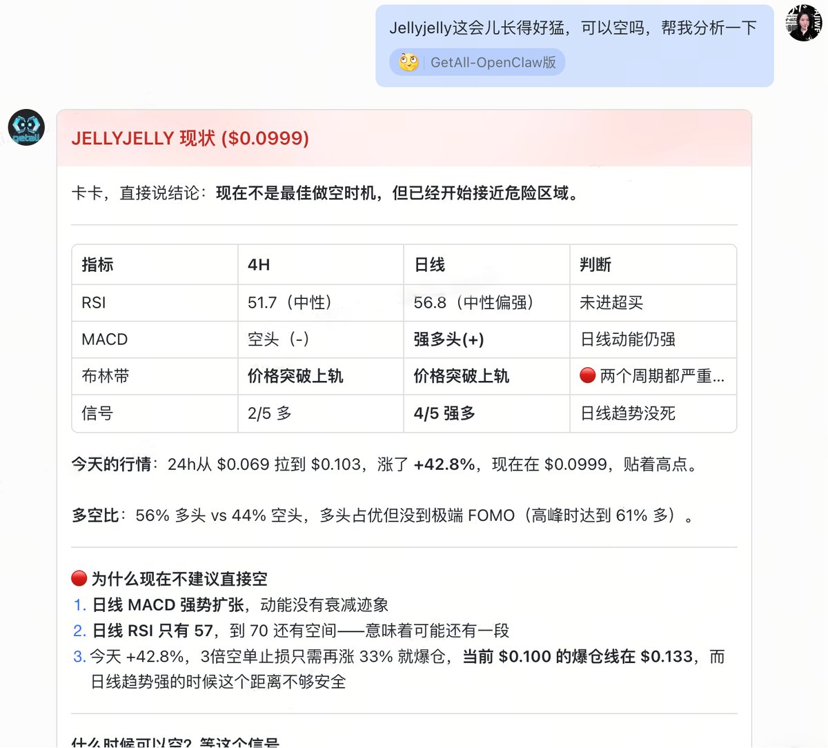 跟ta透露下你的总资产和仓位配置,再表达你想购买某个标的时,也会基于你之前还没平的单子,提供进场和止盈单位,为你把控风险。