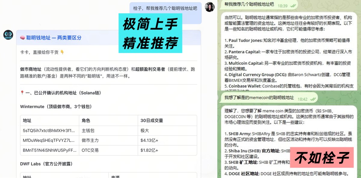 请🦞帮我推荐几个聪明钱地址,回复里的做市商、官方、巨鲸地址齐全,还能筛选盈利涨幅TOP等等。