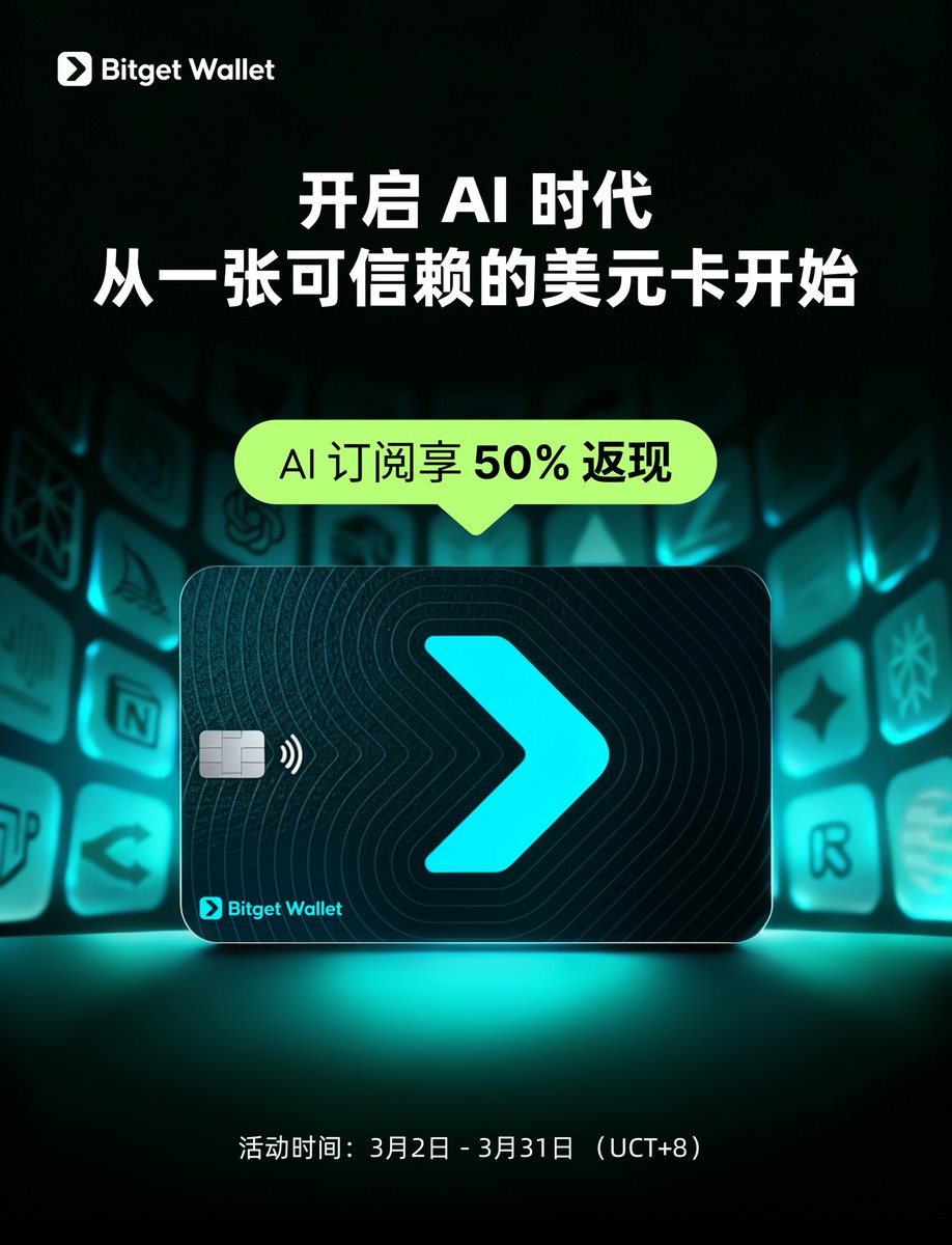 用 Bitget Wallet Card 支付 AI 服务可享首月订阅 50% 返现,0️⃣开卡0️⃣零年费0️⃣外汇磨损,三月 AI 季持续有效,新老用户参与规则见官推原文。