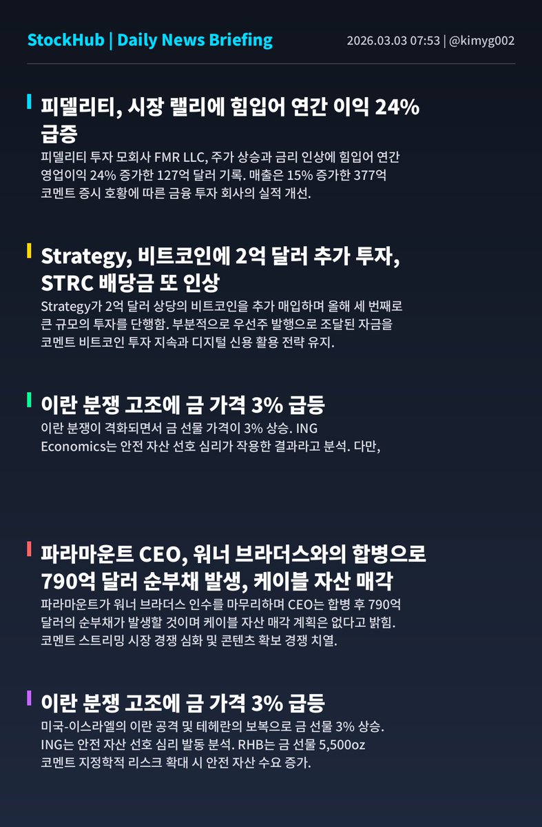 📅 03월 03일 (화) 07:53 기준 | 🌅 모닝 브리핑