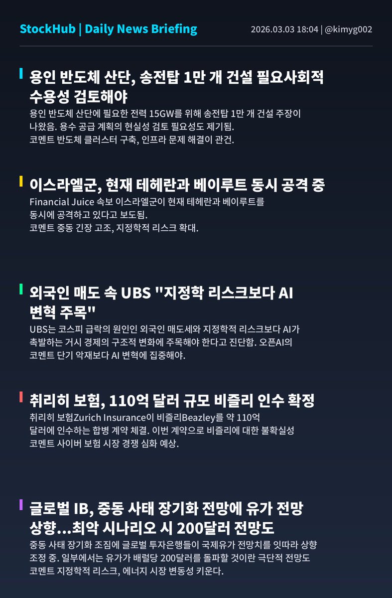 📅 03월 03일 (화) 18:04 기준 | 🌇 마감/나이트 브리핑