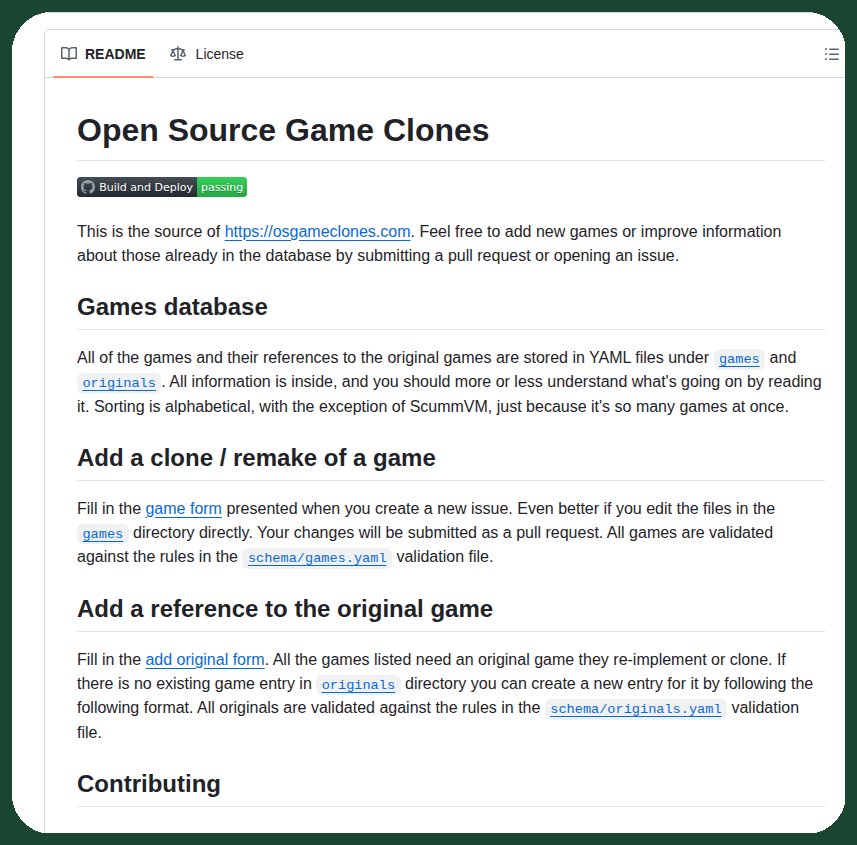 这是一个完全可搜索的、由社区维护的开源翻制、克隆和移植版经典游戏目录——全部免费、可玩、合法。