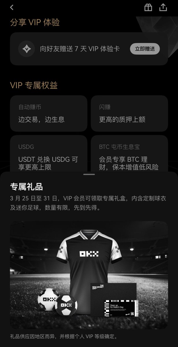 下午吃饭的时候,收到了欧意客服给我发的活动提醒。这期的欧易VIP周边是世界杯系列的定制礼盒。虽然我也不怎么看世界杯足球啥的⚽️但这件熊猫色球服还挺好看的。
