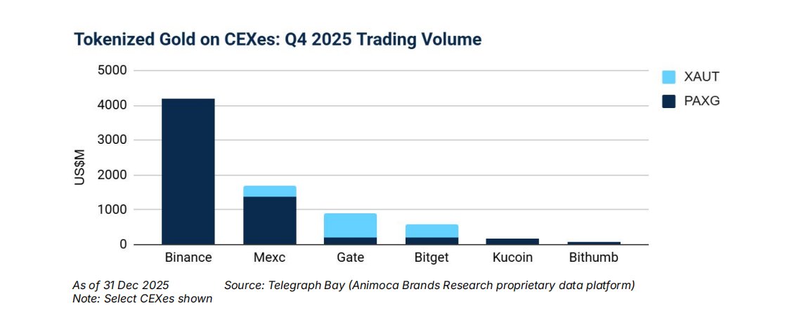 尽管Binance在黄金通证化交易量上领先,但Gate凭借灵活的策略与用户基础,在黄金衍生品与跨链交易领域也取得快速突破,平台创新性地整合了黄金与传统资产的流动性,25年Q4黄金类产品交易量达49亿美元,成为传统金融(TradFi)投资者进入加密市场的重要入口