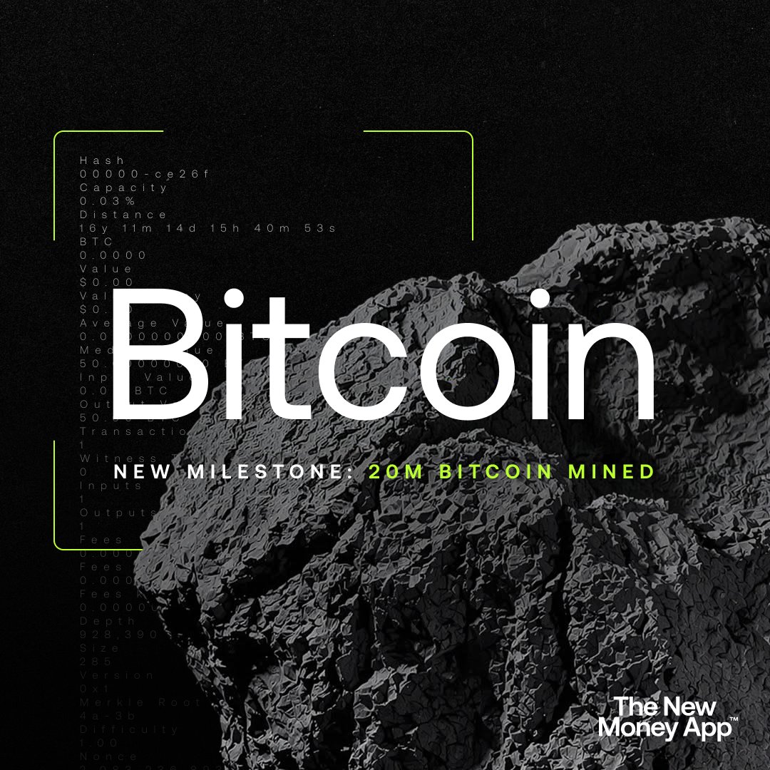 The 20 millionth Bitcoin has been mined.