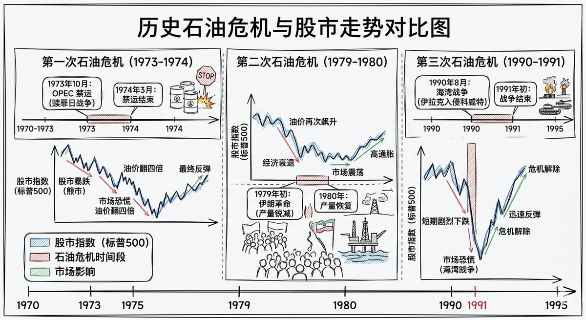 - 教训: 这次是“快闪式”危机。随着美军介入(沙漠风暴),油价回落,股市反弹也非常迅速