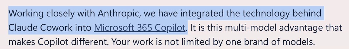 The fact that Microsoft has a 27% stake in OpenAI yet uses Claude to power Microsoft 365 says a lot.