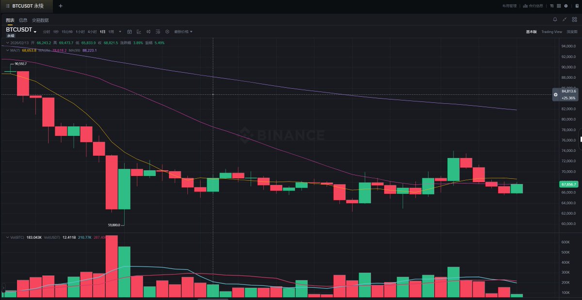大饼上方比较大的压制还是要关注68600,70000,这两个位置,如果反弹上不去这些位置还是会继续回踩的,下方支撑关注65000,62500,再下就是60000了