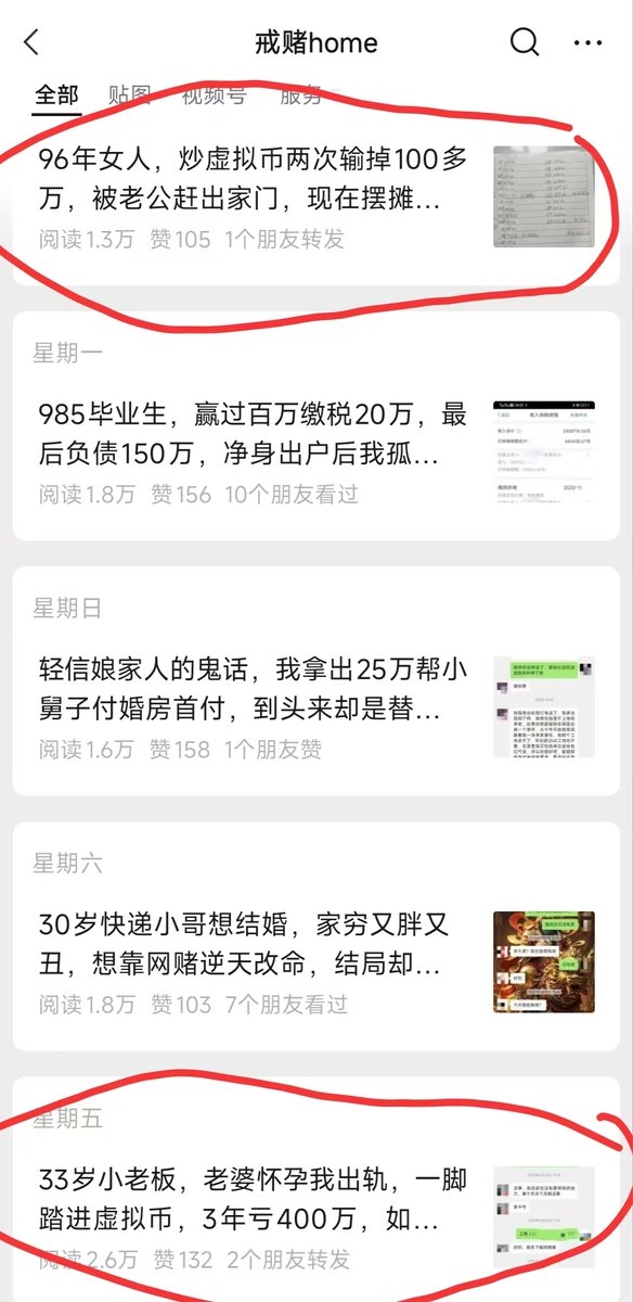 我之前有关注戒赌home这个公众号,最近不知道为什么多了很多合约爆仓的,大家看到的币圈是个暴富的地方,可又是一个暴负的地方,我不否认厉害的人玩合约能发财,但大部分都是像戒赌home里面搞得家破人亡的,他们也有种共性,赌徒心理,好高骛远,就想一朝发财,要是前几年好好学习空投赛道,去项目那build赚点工资,撸点毛攒下来,不玩合约也不至于这么惨啊,不过现在大部分反撸,空投赛道也不好搞了,我也得转型了。