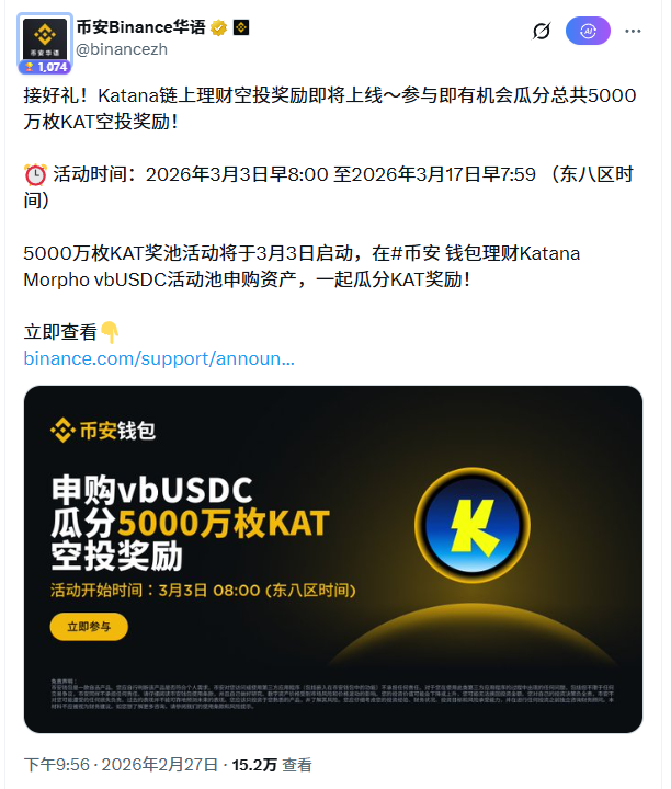 2️⃣币安钱包这边也有个Katana 的 USDC 理财活动。