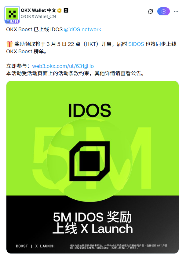 OKX钱包boost 上线了@idOS_network 活动,奖池500万枚 $IDOS 代币。