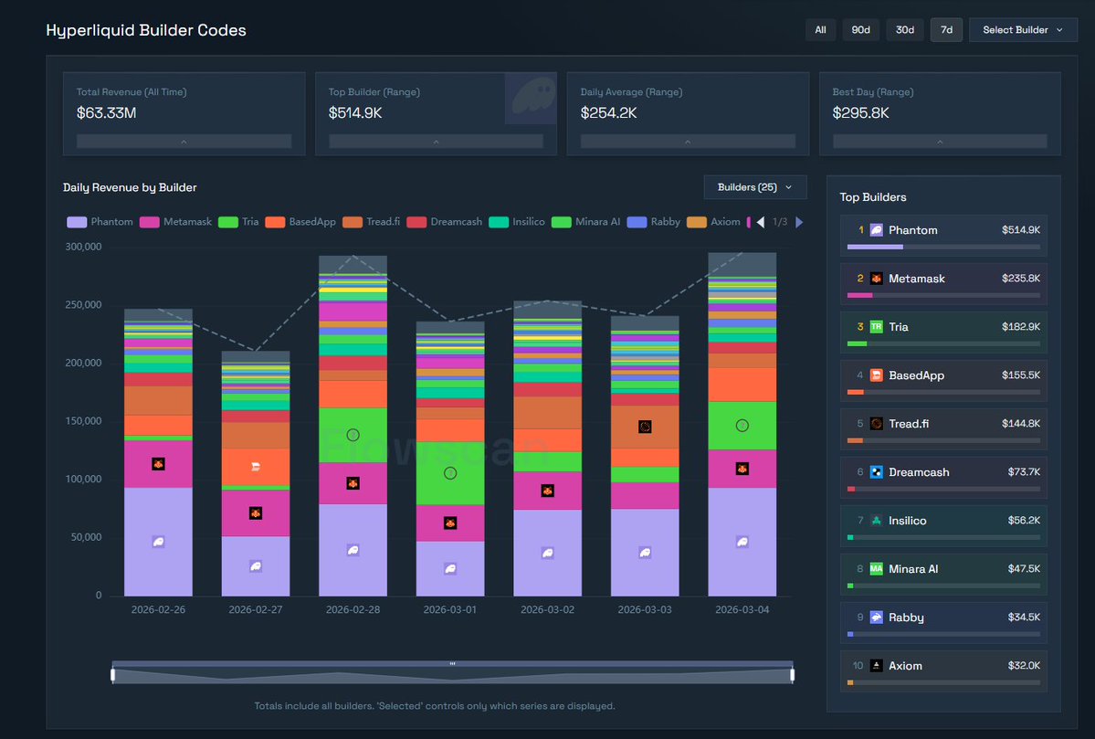 从 flowscan 的数据来看,Tria 在上线 Hyperliquid 仅仅 30 天 内,就已经冲到很亮眼的位置: