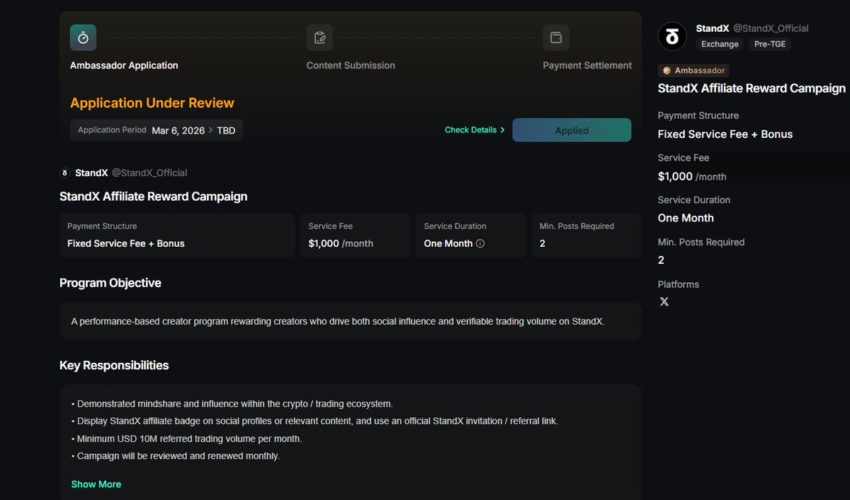 现在在 StandX 上参与的方式也越来越多了。