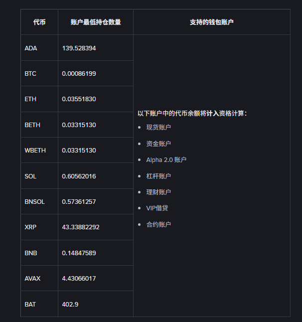 在2025.6.11时账户中持有以下图二币种,自动获得空投资格。