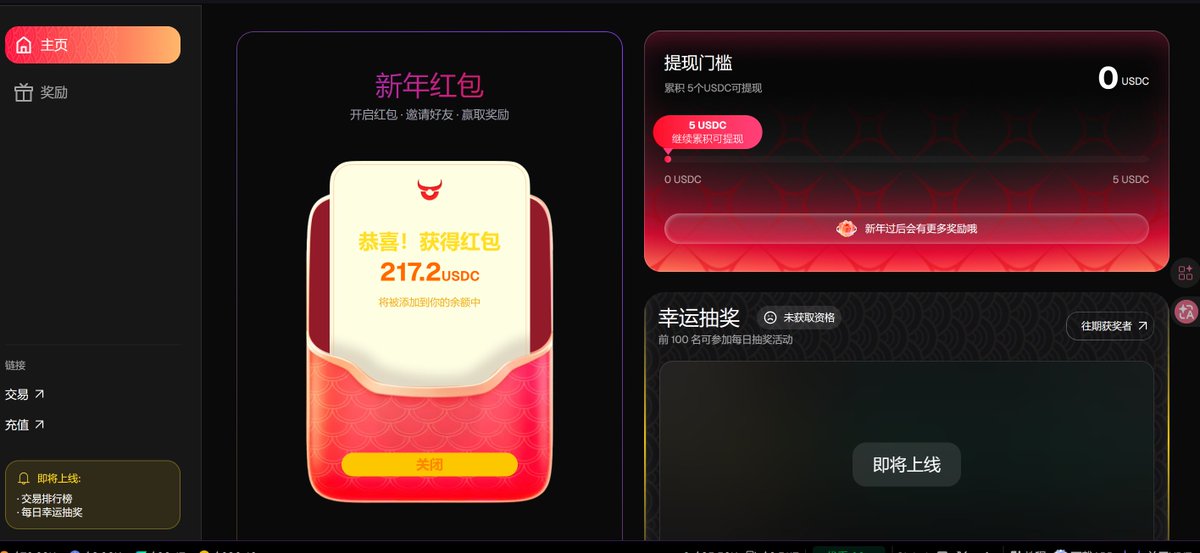 而且不用等 9 张,3 张就能开盲盒,最高 500 USDT 合约仓位券。