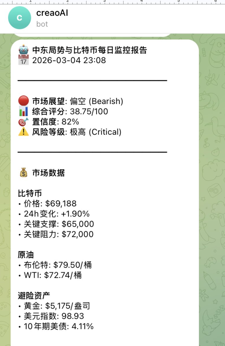 接下来我让这个Agent APP每天早上跑一遍,然后发送到我的Telegram(图 4)每天跟踪数据得出的结论: