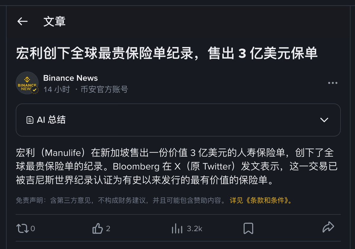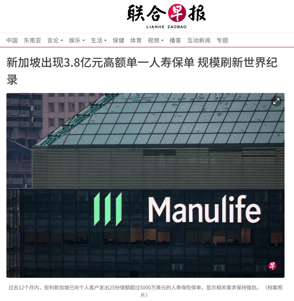 宏利售出 #3億美元人寿保单