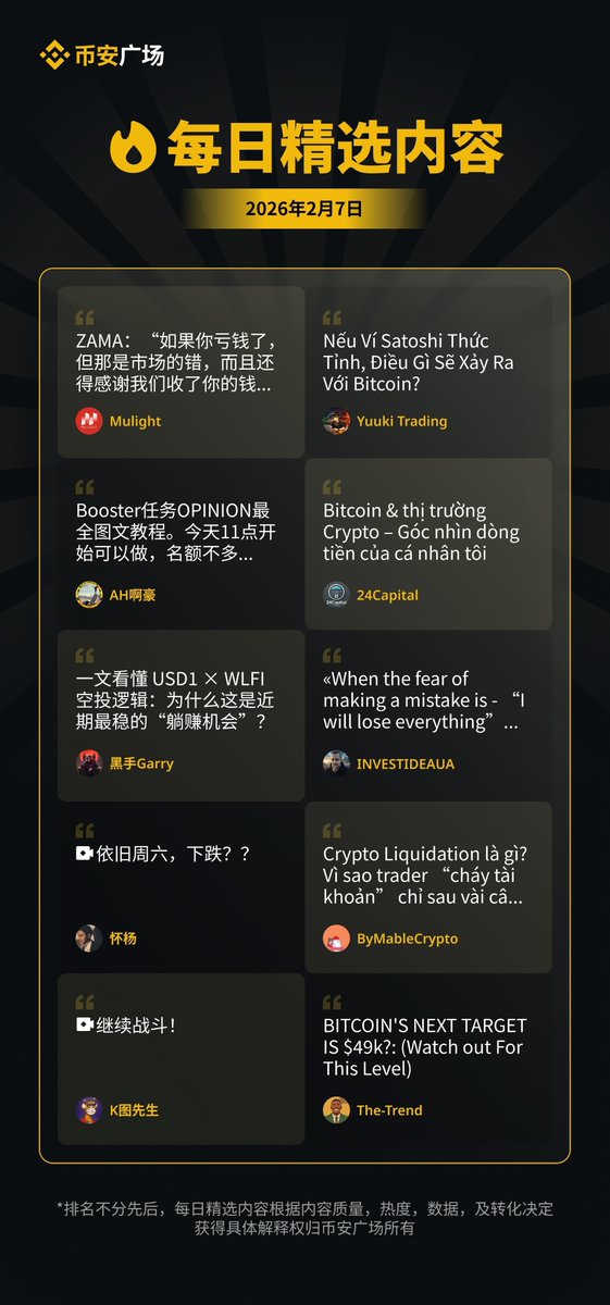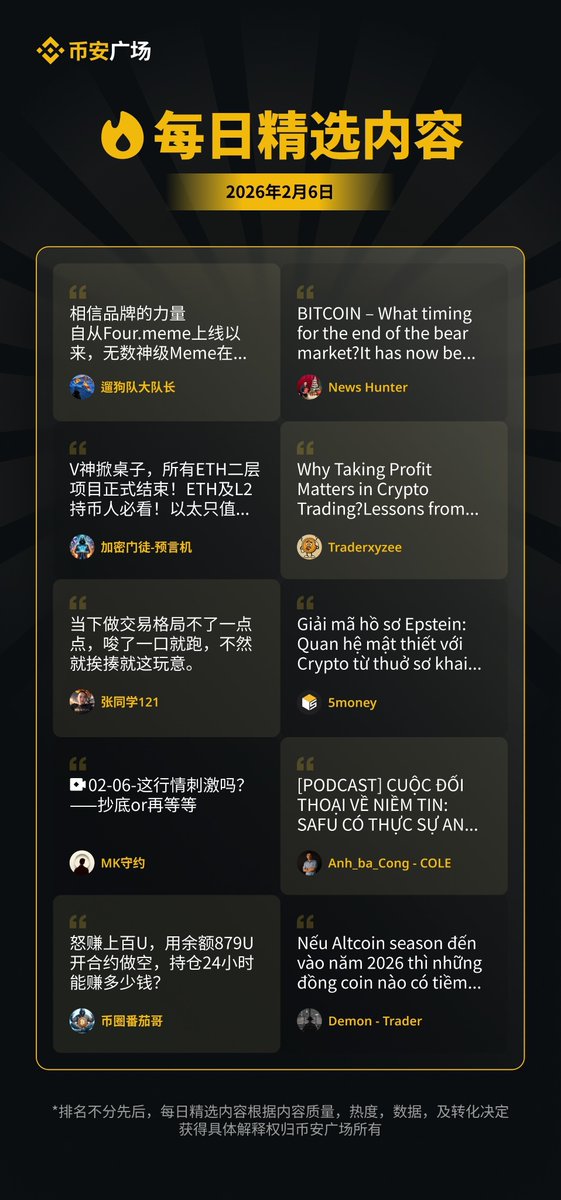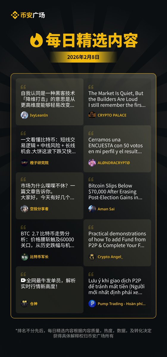 币安广场【每日精选内容|2026.02.08】
