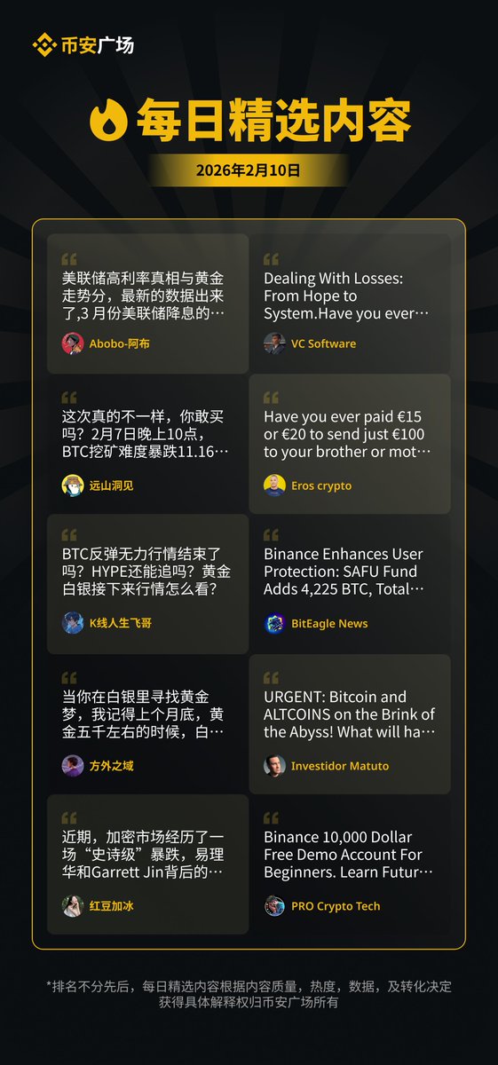 📌 币安广场【2.10 每日精选】已更新
