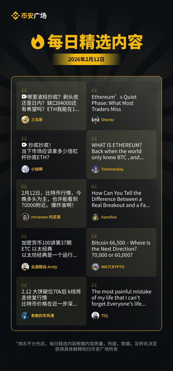 2月12日币安广场「每日精选内容」已更新。