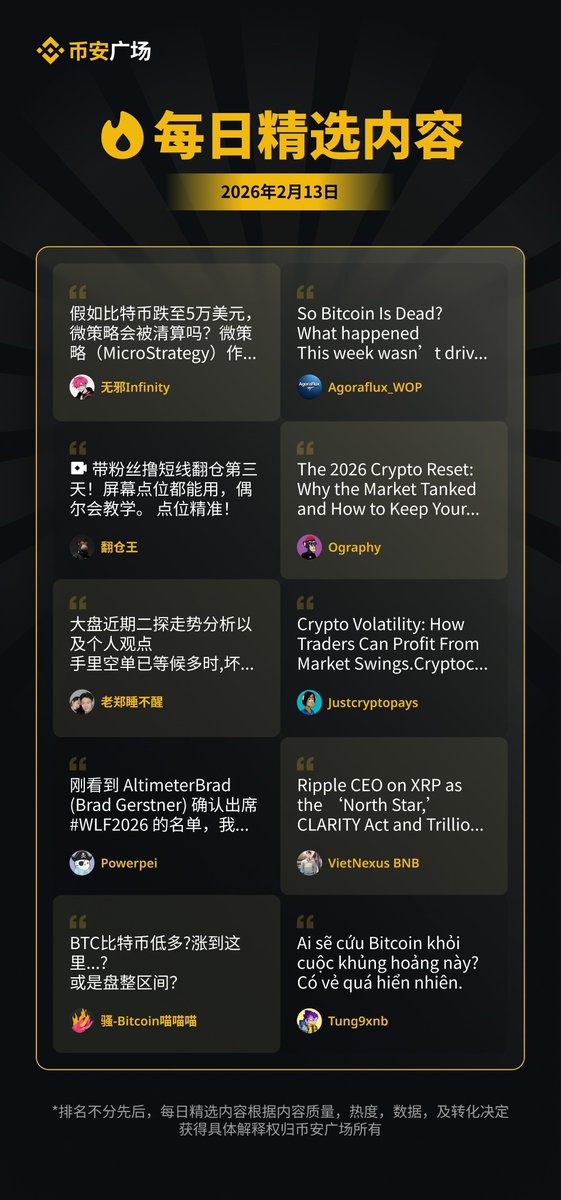 币安广场 · 每日精选内容(2月13日)