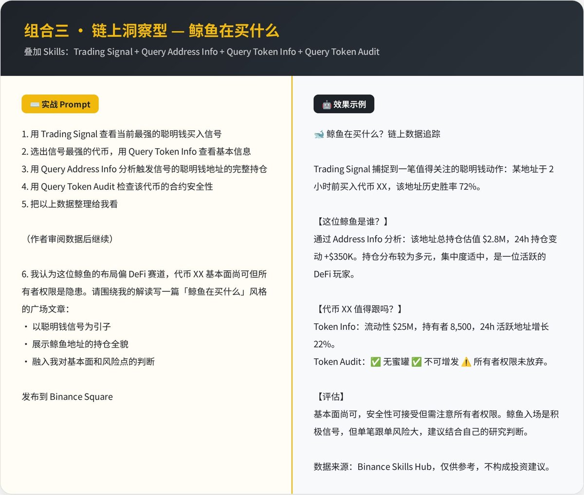 叠加 Skills: Crypto Market Rank + Query Token Info + Binance Spot Skill