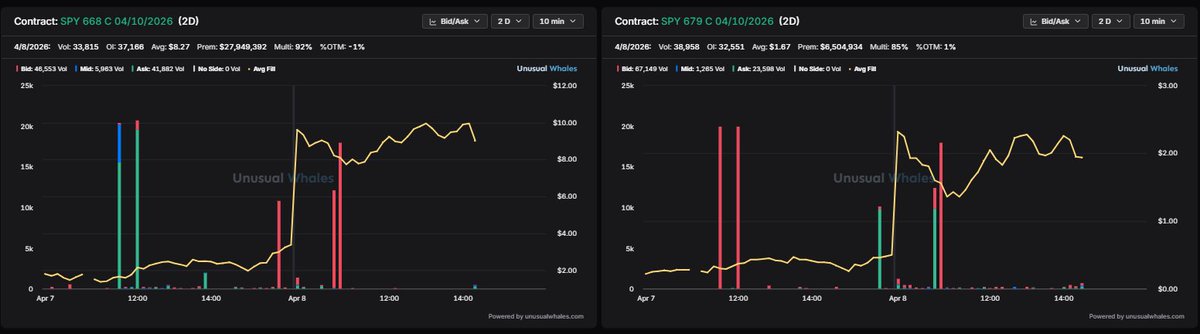 Some big $SPY call flows from yesterday presumably playing the ceasefire news...