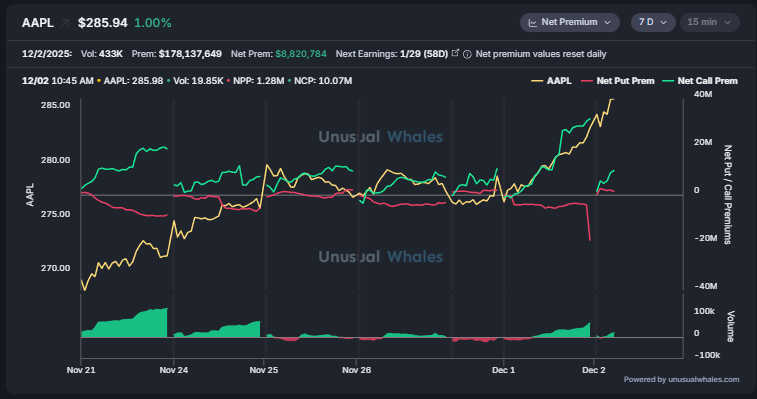 $AAPL bullish net premiums for the last week, en route to a new all time high!