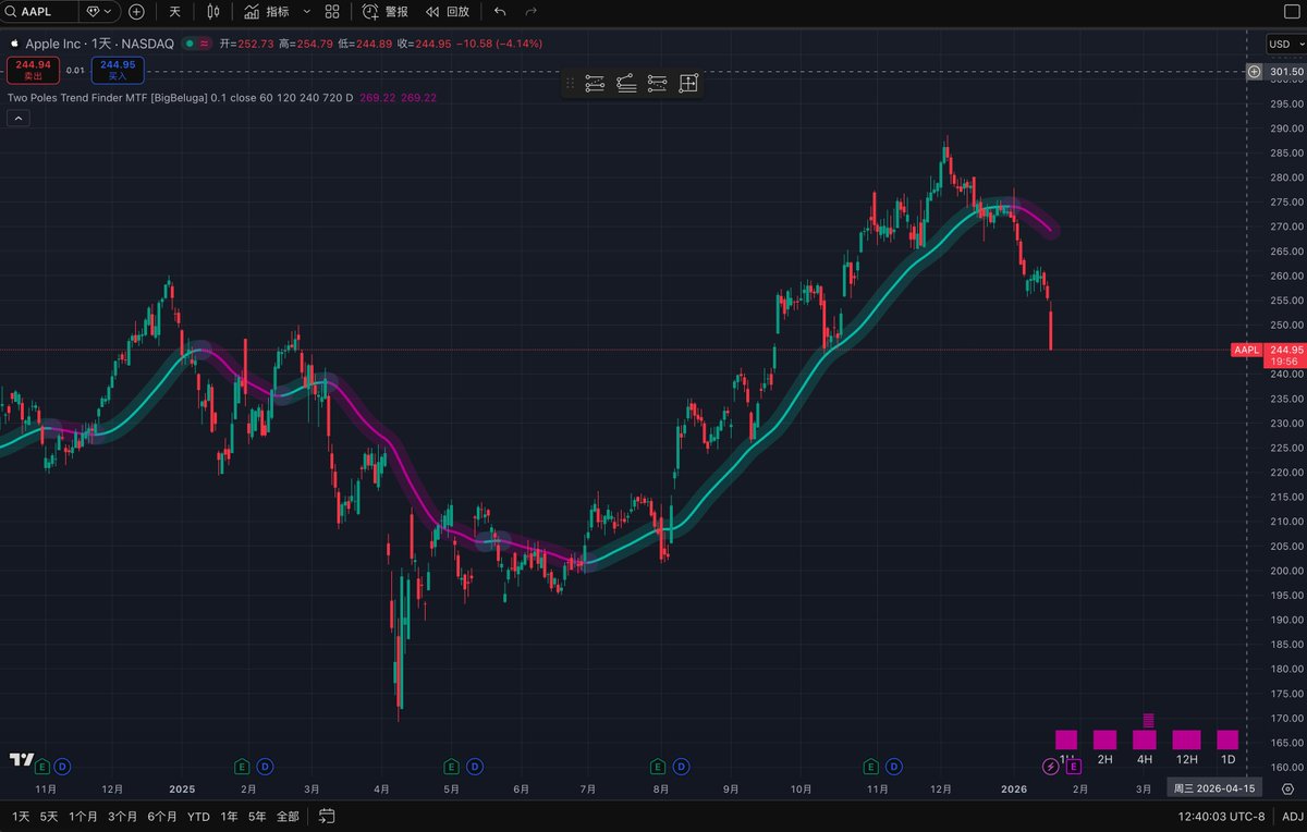 $aapl 看起来要起来要开启一波日线级别的调整了,第一目标220,第二目标200。 是因为库克要退休了? 还是因为苹果17卖的不好? 交易美股,首选Bitget: