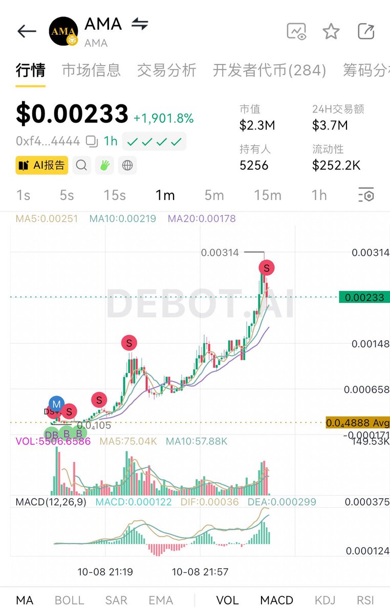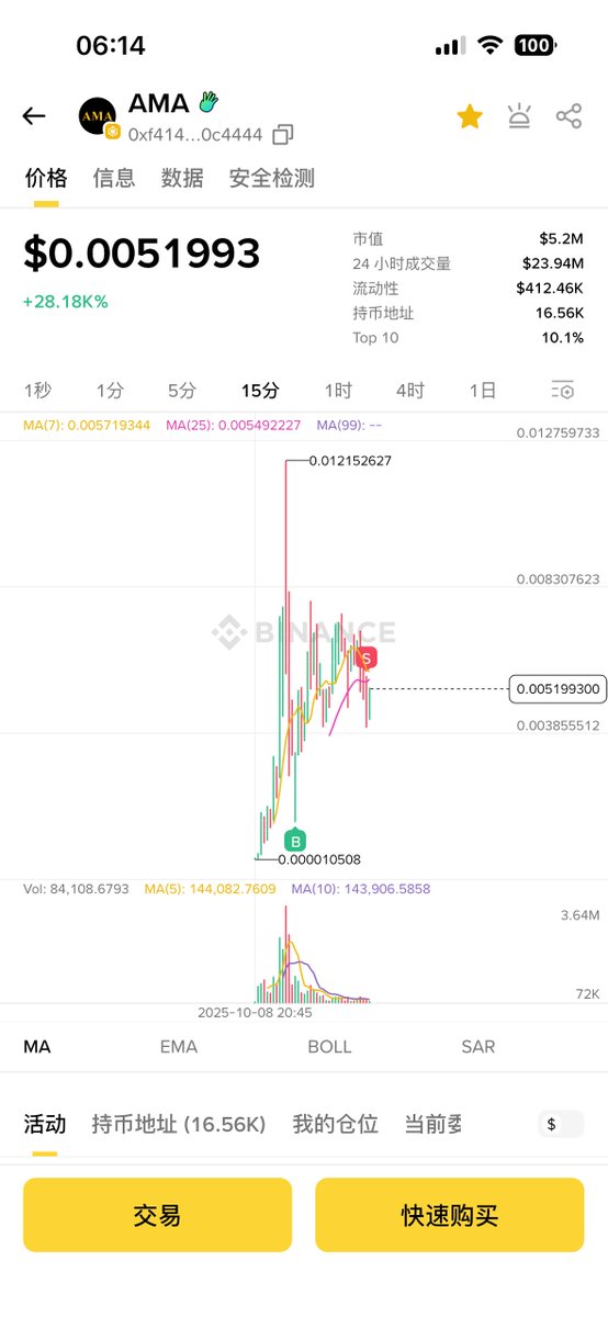 行情太几八牛了,又买中一个大几十倍 $ama 也是从CZ找的角度 买完出本,又是一路卖飞 我现在要调整出货策略了 以后3X-10X-30X-100X-300X这样推算 最近买中了十倍币,也买中了百倍币,虽然很多没起来,但每天中几个也够了 #bsc #AMA