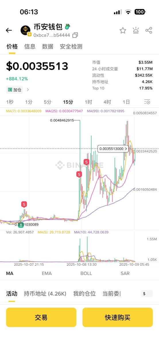 昨晚又买了 $AMA 全家桶跑出来一个 币安钱包 距离我发的时候 7x