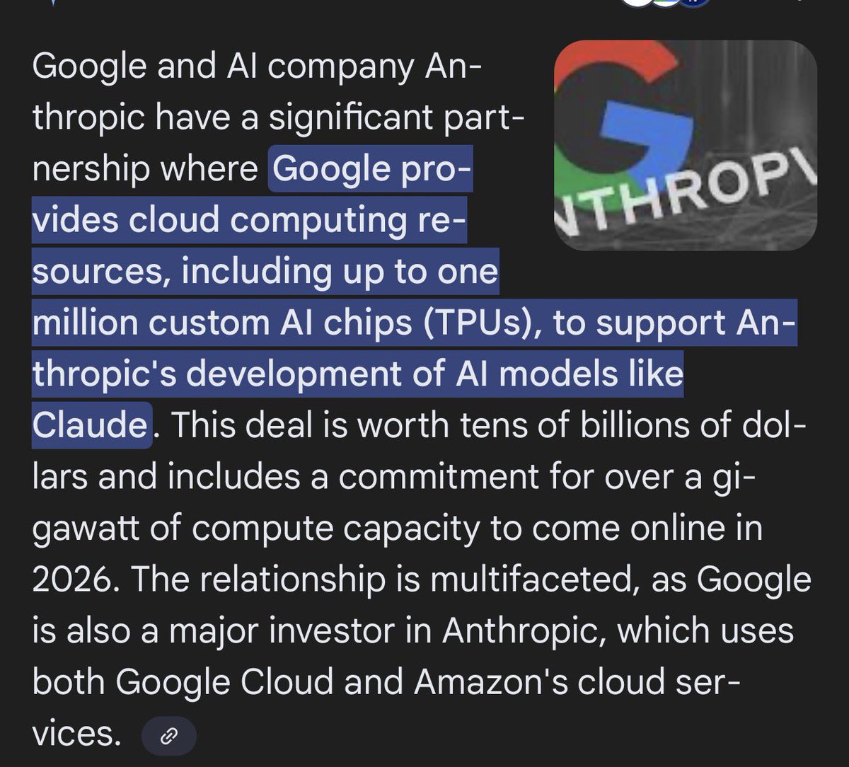 其次,整个顶级 AI 实验室人才,可能也就那 50 个人?全被三家瓜分完了(Open/Google/Anthropic),更可怕的是这三家都可以看成是 Google 十年培养出来的人才,更熟悉Google 体系和作风,所以 NVDA 要想从源头上抢到先机,只能从分家出来的 Open 押注,并且我感觉还需要大幅度千亿投资