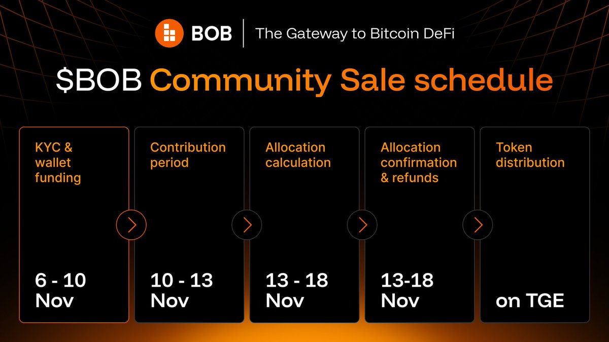 BOB(Build on Bitcoin)的代币销售机制设计展现了项目方在合规框架下激活比特币DeFi生态的战略野心。以下从技术、经济模型和合规维度展开深度解析: