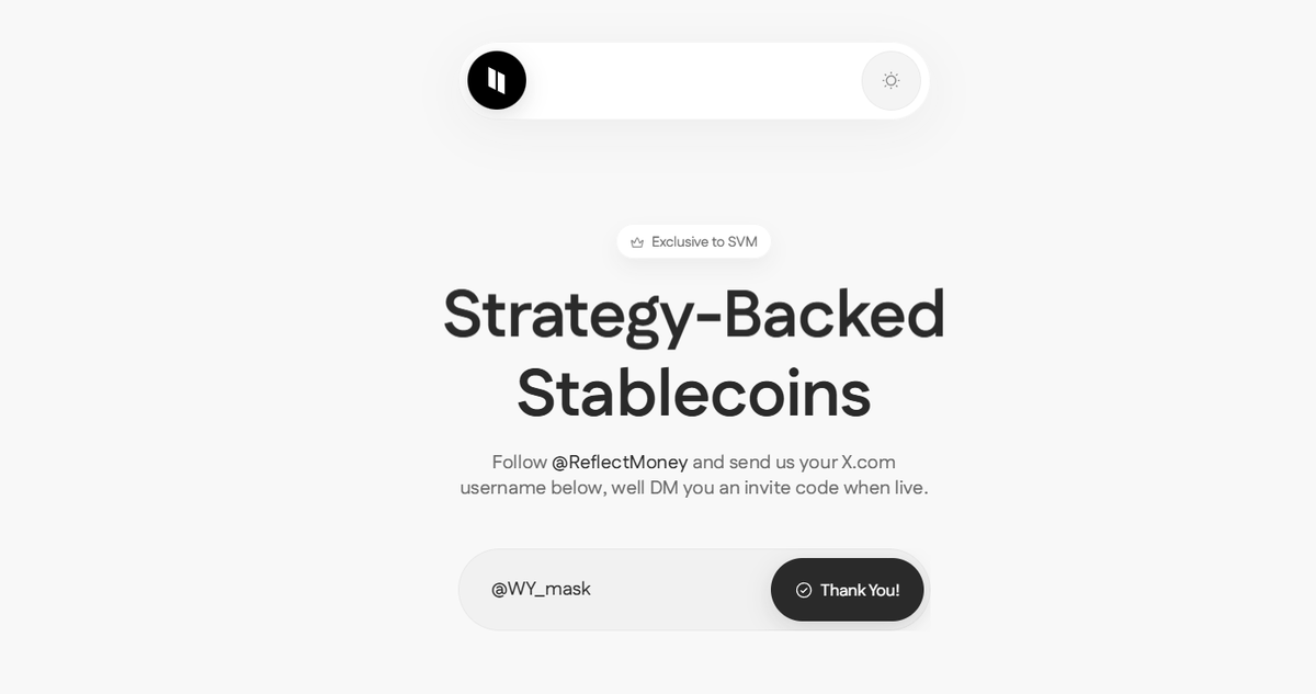 种子轮融资375万美金的Solana 上的合成资产兑换协议Reflect @reflectmoney 一定要去网站填写一下自己的推特用户名申请参与早期测试
