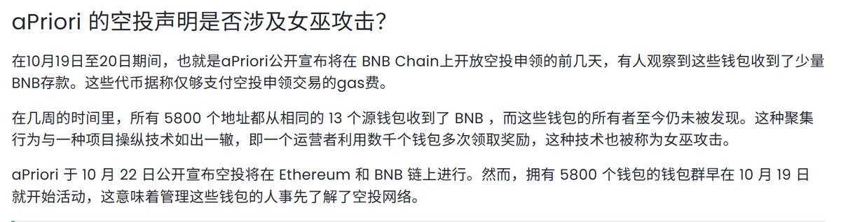 Web3交互者最担心的事情就是女巫😭,最近大热的 @aPriori (⚠️它是MONAD 生态中体量最大的项目,aPriori 已成功完成 3000 万美元 融资,YZI LABS也参了一脚,) 很多人也在讨论 $APR 空投女巫问题。