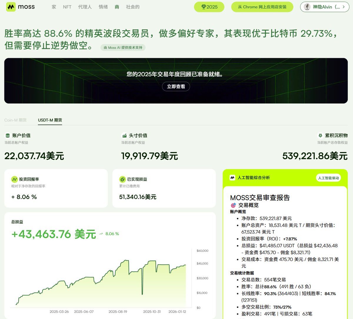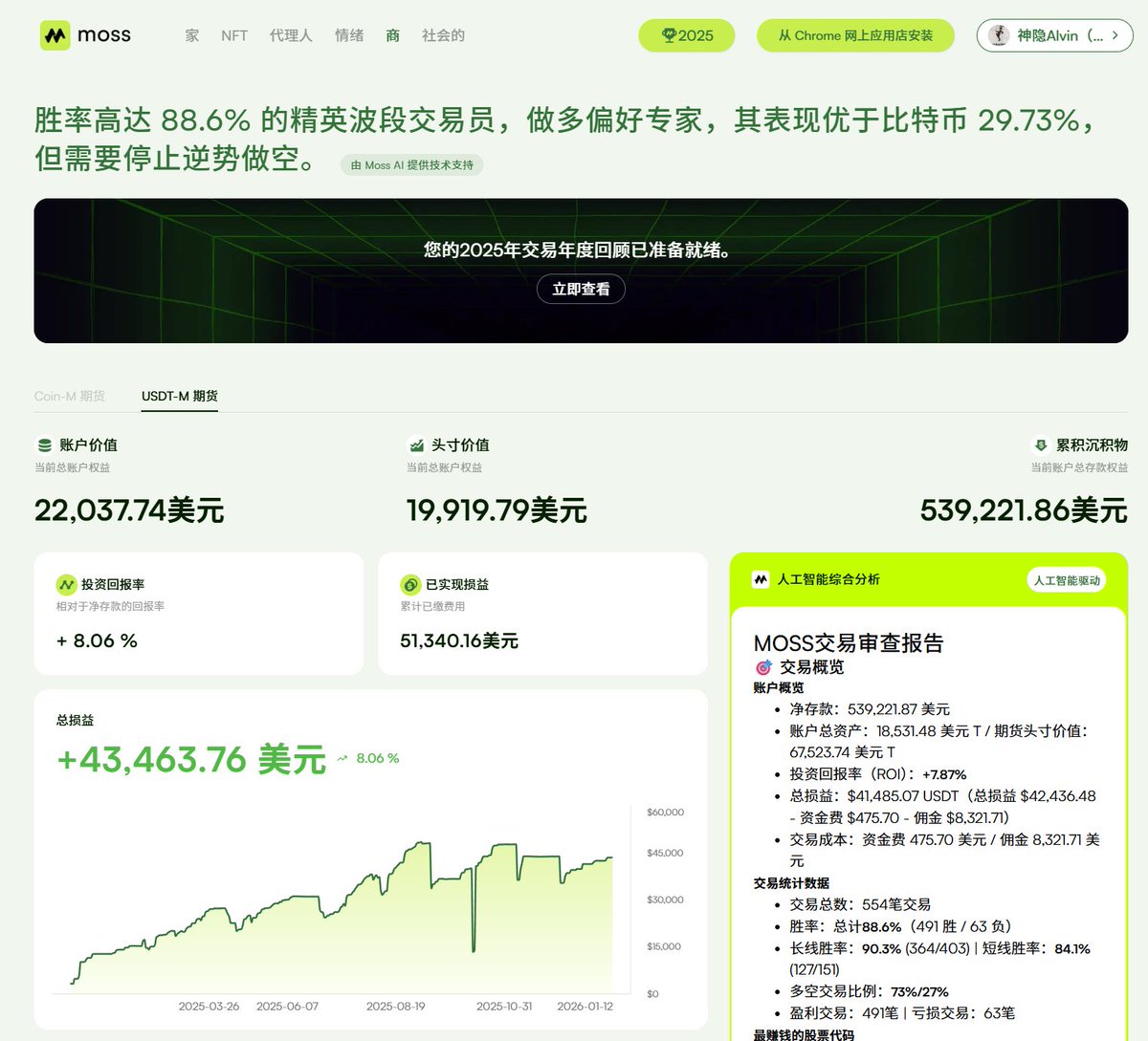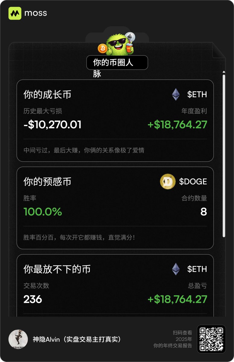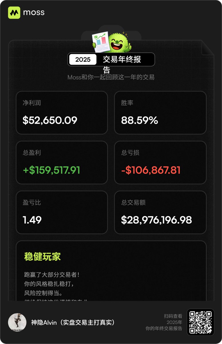 【有趣的工具分享+空投羊毛】 我发现一个很好用的网站,导入只读的api会给你分析你过去一年的交易数据出一个很详细的报告告诉你哪些做得好,哪些需要优化,刚体验了一下发现很中立和靠谱,也适合交易员上去展示自己的实盘🥳 过去一年高强度交易下来最大的心得是:仓位管理很重要!!!我严格执行固定1.5w u左右的投入,然后不断提取利润,所以有足够的利润随时在大行情之下把握住更多机会快速复活或者灵活周旋。希望大家无论是跟单还是自己交易都要严格控制仓位,慢就是快。 根据 #moss ai @MossAI_Official 分析,我去年最放不下的币是ETH,以为最懂和信错的币是 $auction 获得标签: 全天候量化机器、E卫兵、死多头[还挺准] 需要改进的地方:别逆势而行、别老做ETH! 你也来分析一下自己去年的交易吧,现在还有积分可以撸,分析一次会获得200积分,预计用于空投计算。 在币安欧易等平台的设置里找到api设置一个只读api导入然后等待十几分钟就行了(因为要详细分析过去一年的所有数据所以比较久):https://t.co/VzYwEE6wVf