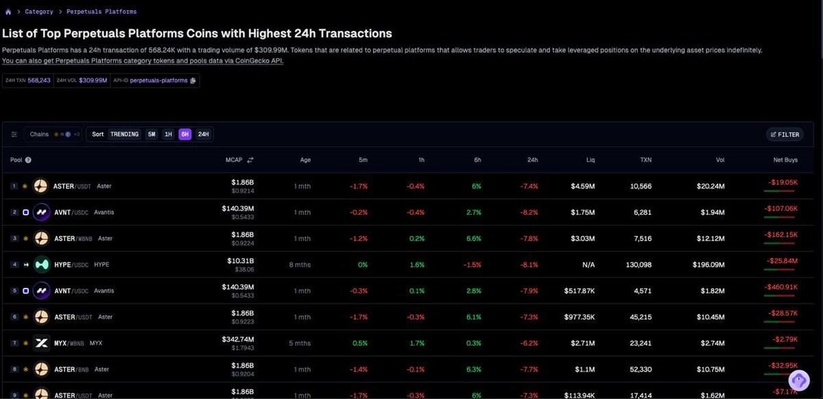 On @GeckoTerminal, the “Perpetual Platforms” category started flashing across pinned Trending Narratives.