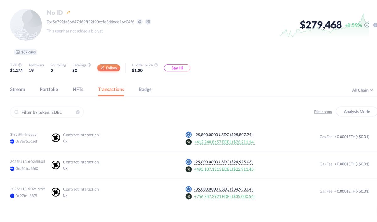 11 月 5 日多平台上线后, $TRUST 从开盘 FDV 1.5 亿美元飙升至 6 亿美元峰值,随后 24 小时内回落至 2 亿美元区间