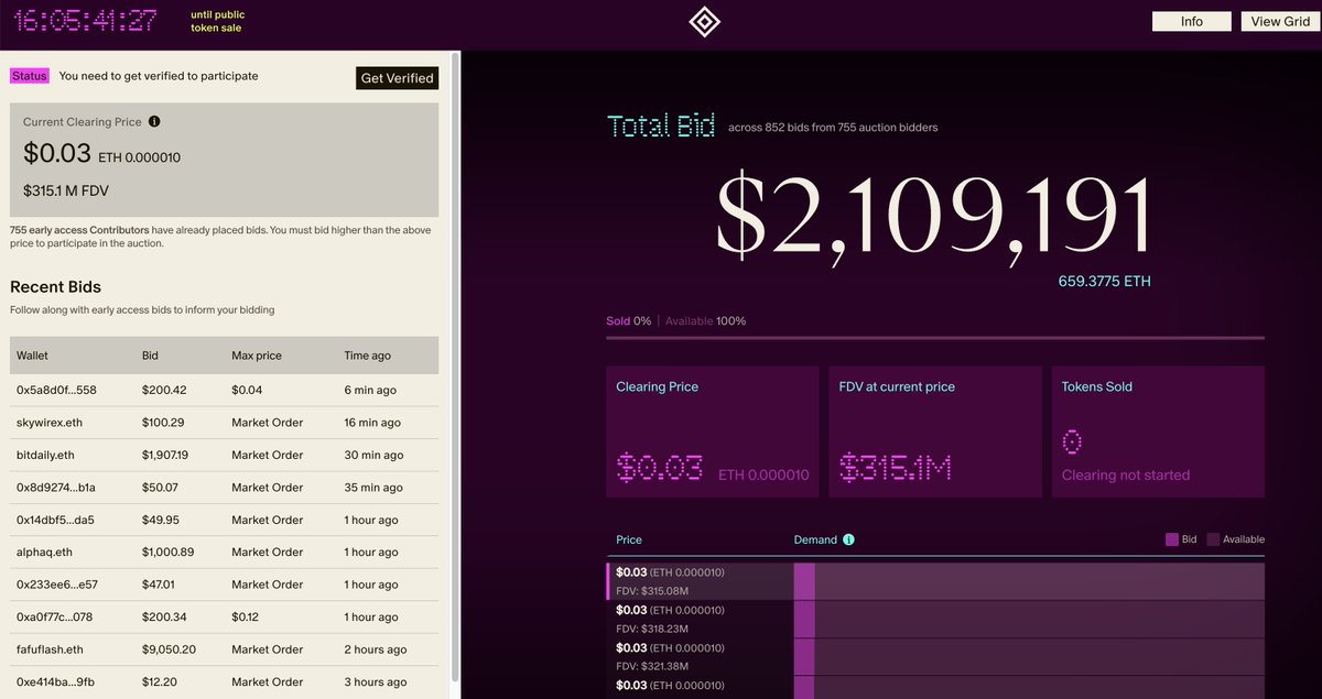 他们 2 号要开始代币拍卖,现在的话是可以预先登记并完成 KYC 以节约时间。因为他们这次是用的新型拍卖方式 (持续清算拍卖,CCA),从底价开始的拍卖在价格方面早期进入应该是更具优势,现在的预售阶段就已经有超过 1 万个地址冲进去了 6,271 ETH ($1778 万) 认购资金了。