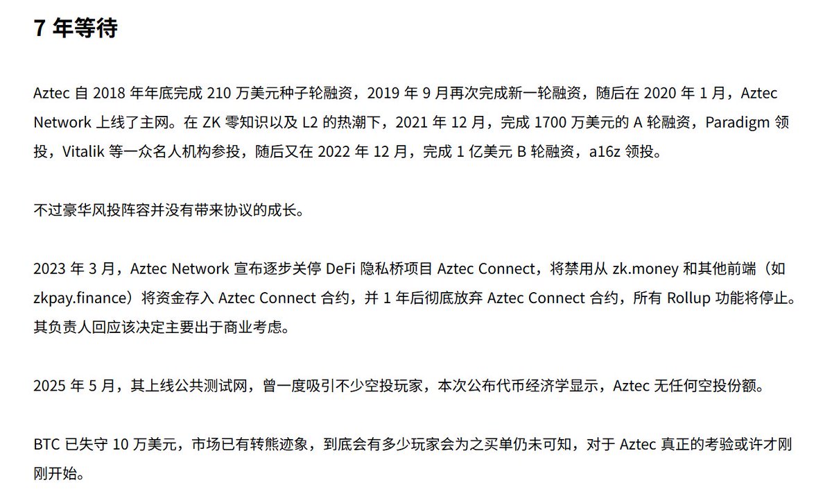 虽然Aztec依然有技术积淀,未来也可能找到路径走下去,但我个人是没兴趣参与了。