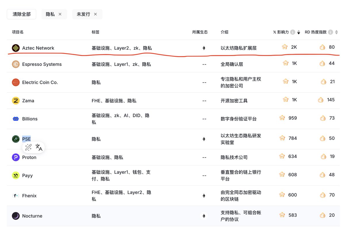 当下Aztec的热度和关注度最高,算是赛道独一档