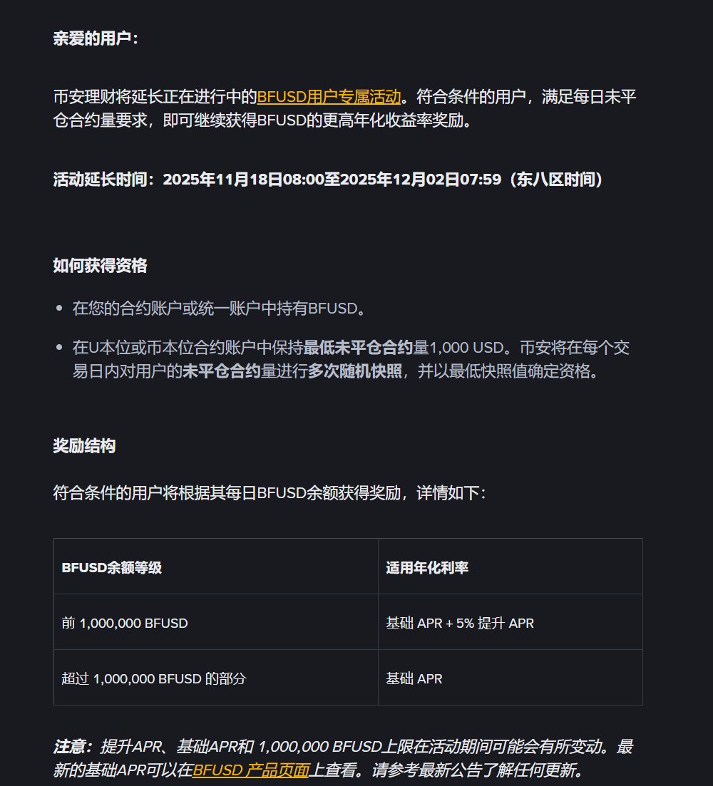 不得不说, 币安 @binancezh 的 $BFUSD 理财真的有点强。