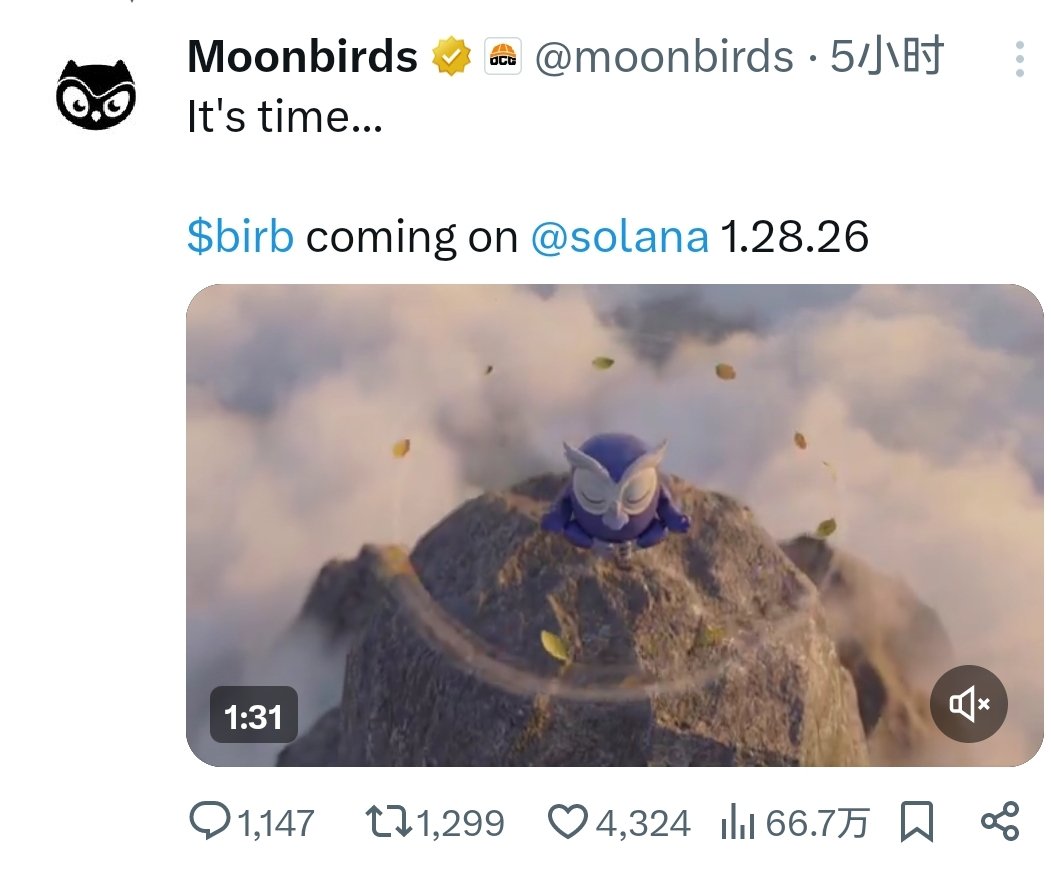 $BIRD 将在 2026 年 1 月 28 日Tge,并且选择在sol链上。突然发现好几个这种NFT IP都喜欢发射在SOL链上。