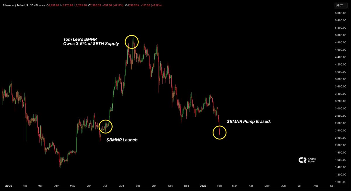 随着 $ETH 回落至 $2,400 ,BitMine 手里的 400 万枚 $ETH 已经浮亏近 $60 亿美元,