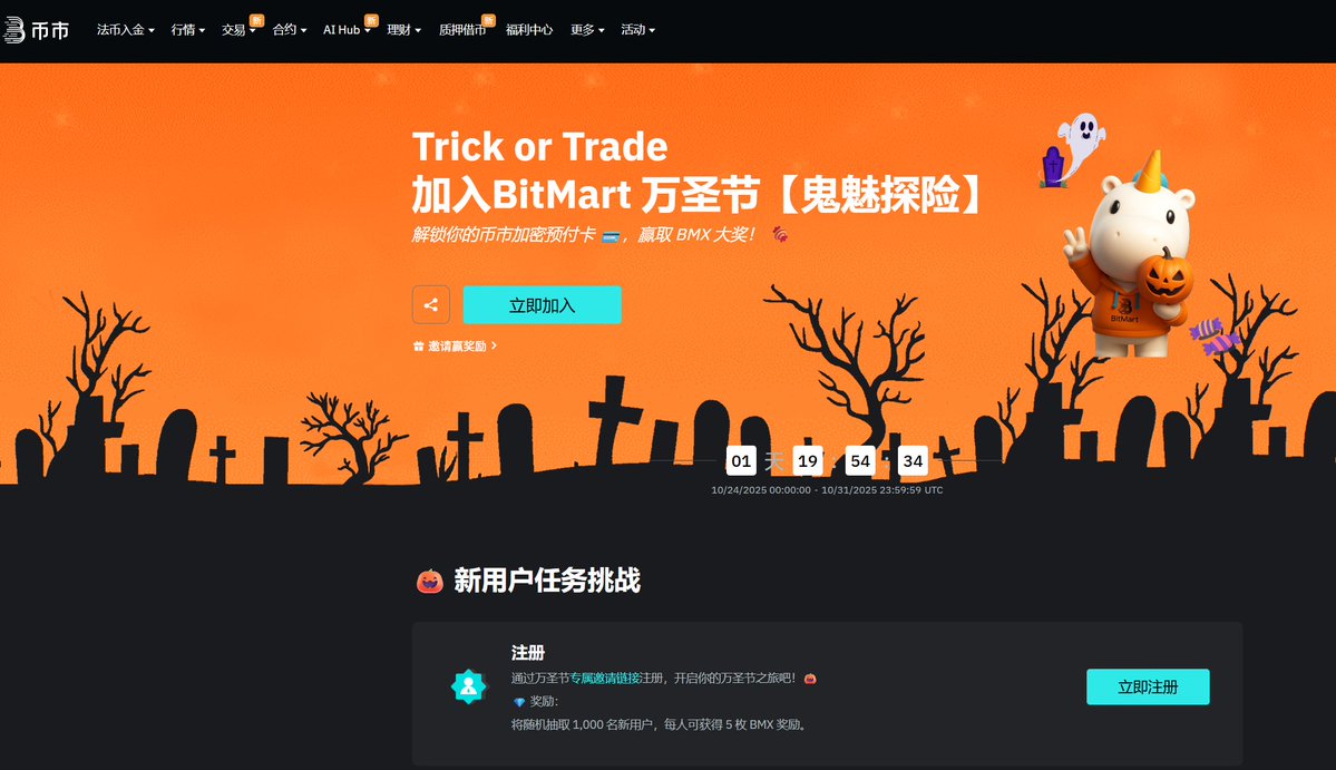 感觉这波@BitMartExchange 是把万圣节的Trick or Treat玩成了 Trick or Trade——不管你要糖还是要赚,只要动动手,奖励全都有。