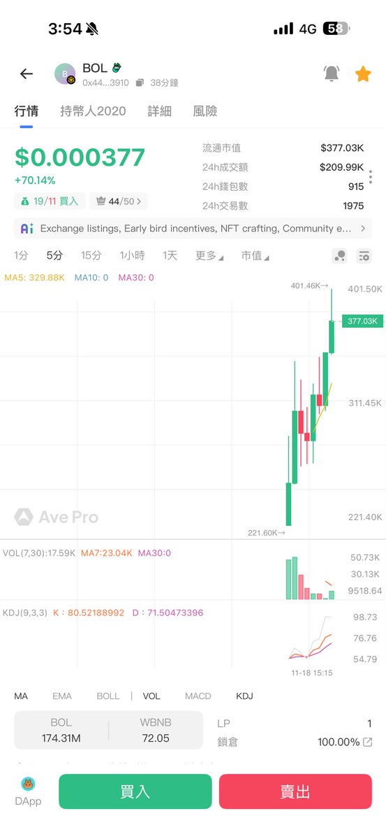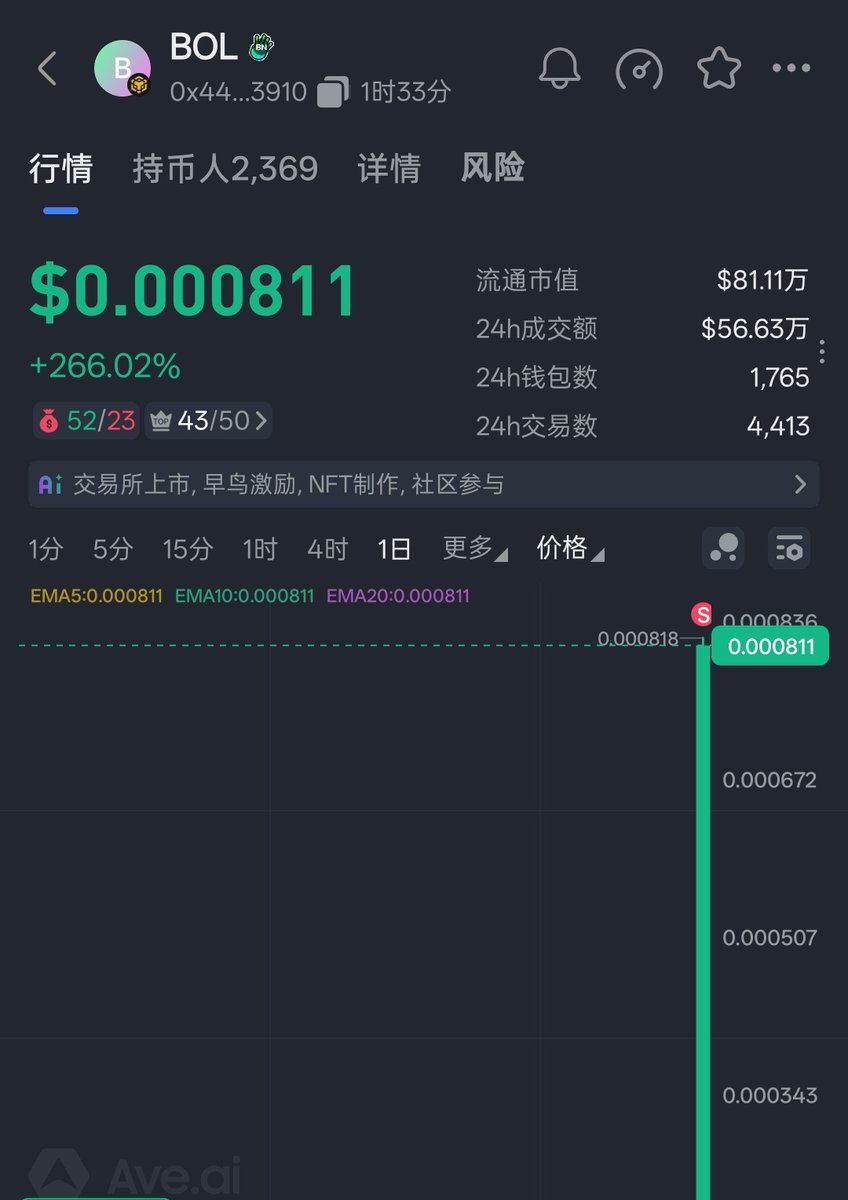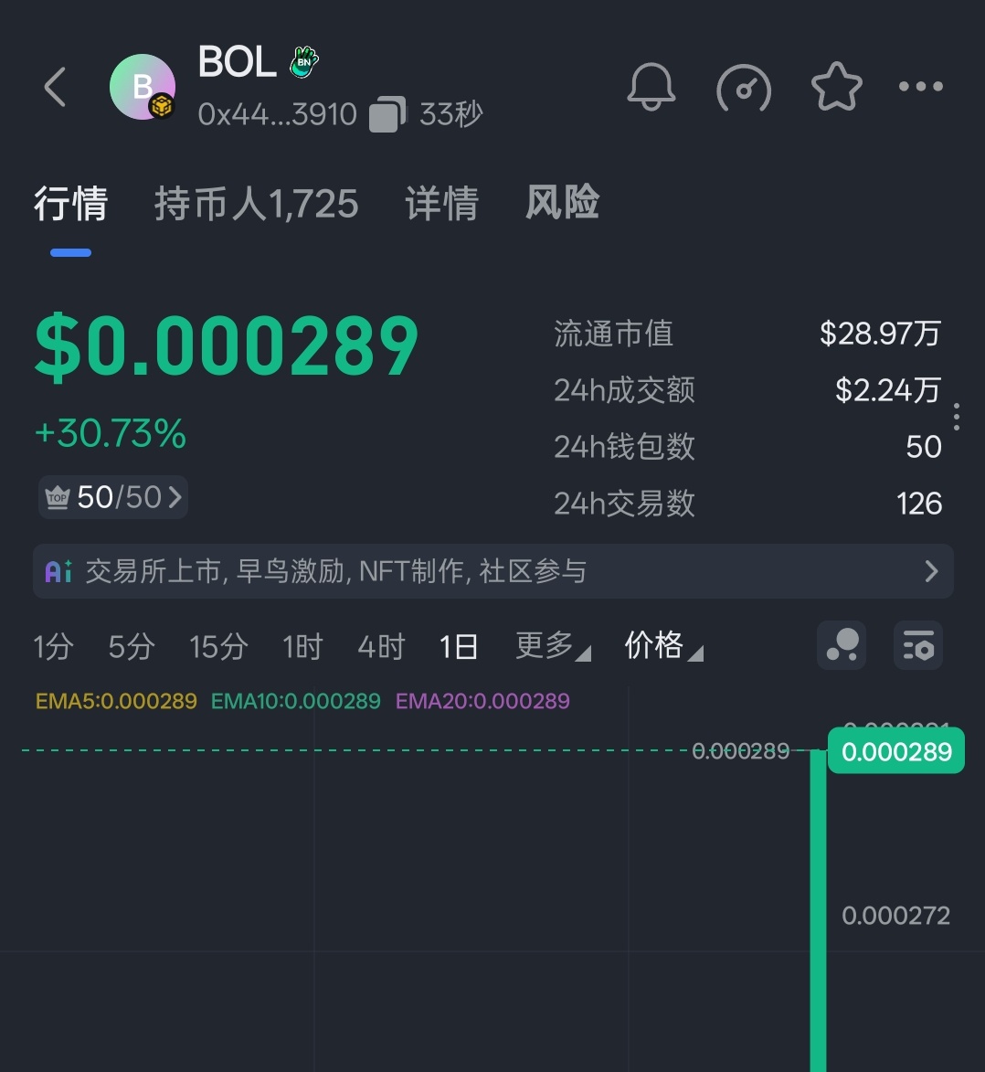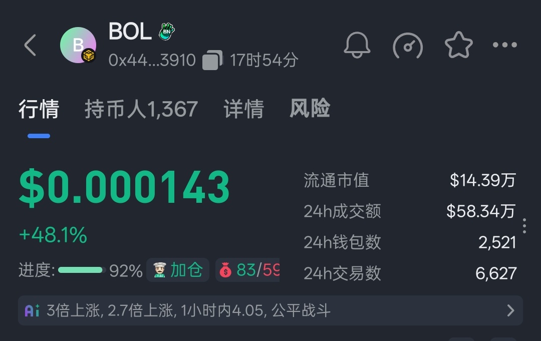 就问这个行情 #BOL 有个10倍牛不牛,咱少发脾气只发财,逆风如解意,多赚人民币